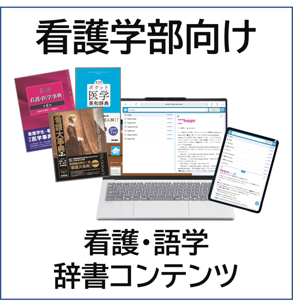 大学生には大学生用の辞書を。専門用語を多く学ぶ看護学部生向けのコンテンツをまとめたセット。