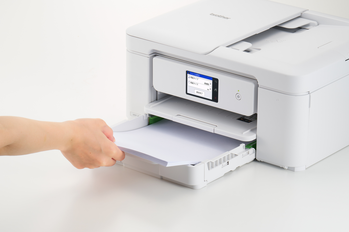 タッチパネル操作、前面給紙トレイ150枚、ADF(自動原稿送り装置)、自動両面印刷対応